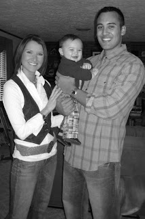 Time flew by, and guess what…it was already December. So hard to believe our lil guy was 17 months! Although Santa wasn’t his favorite this year…his babysitter Emily did get him a singing snowman that he carried everywhere. Thankfully, Christmas is over and the singing snowman is hibernating till next Christmas. 🙂What will 2009 bring? Lots in store for HOUSE OF ROSE! I’m going to go ahead and make a prediction…most of our year will consist of building our new house and potty training P! This is one of my favorite pictures of the three of us on our property where our new house will be built.