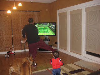 That’s right…the Wii!!!!!!!! I was so against this dang game system until my parents came over tonight and gave it to J for a belated birthday gift. It didn’t take me long and my competitive nature started to take over….I wanted to WIN! But so did J!