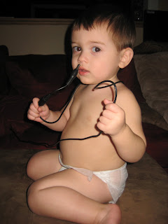 Jack has a thing for electrical cords too! What is it about kids being drawn to the only thing in a room they can’t play with? Jack would bypass every toy in a room for an electrical outlet to stick his finger in! A mother’s job is NEVER done 🙂